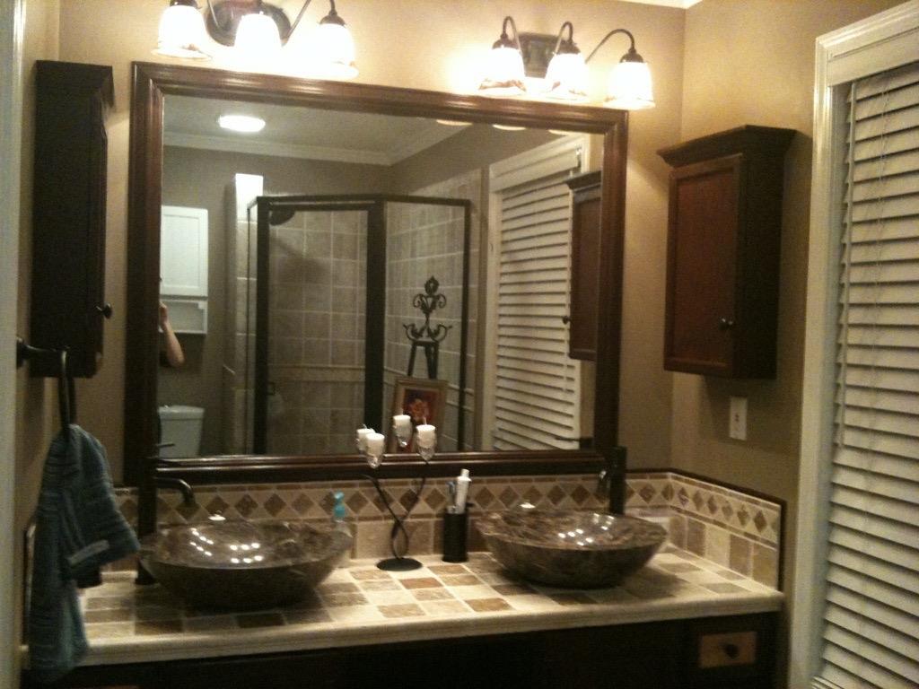 Bathroom, Tile, Vinyl, Sink Faucets, Sinks, Cabinets, Cabinet Hardware, Countertops, Hardwood and Modern