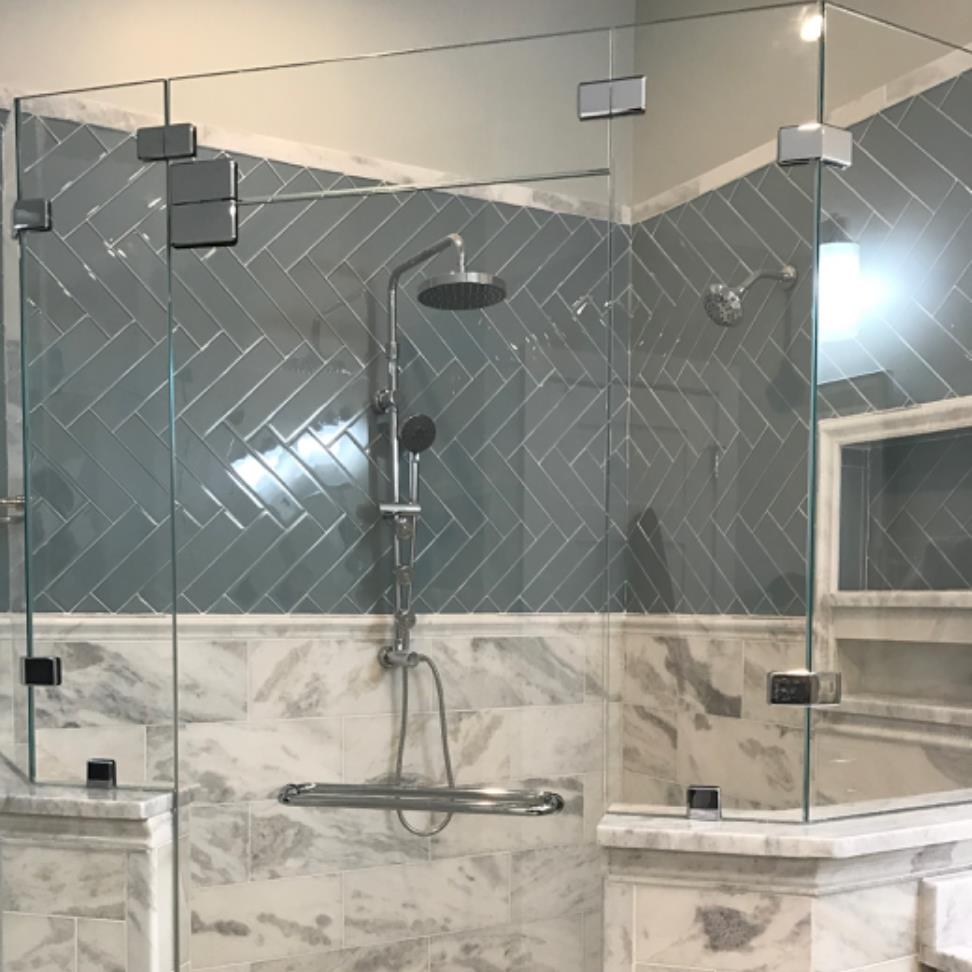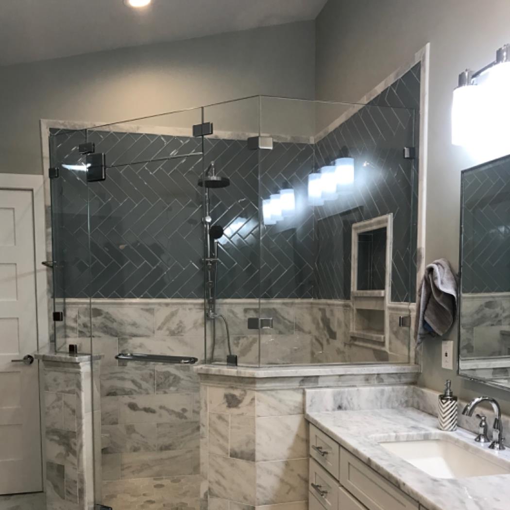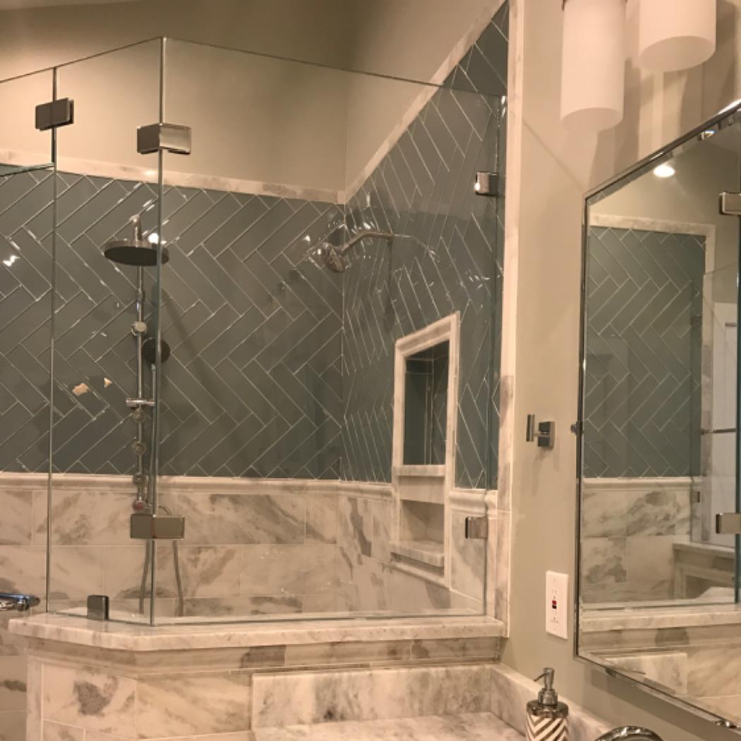 This beautiful bathroom remodel is highlighted bu the use of marble.